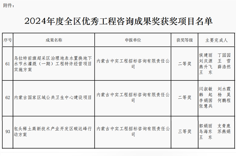2025-04-1610057 次2025年4月16日,内蒙古工程咨询协会公布了2024年度优秀咨询成果奖获奖单位名单,我司取得两个二等奖和一个三等奖,我司专业能力和服务质量再次获得行业的认可。此次获奖,不仅体…
